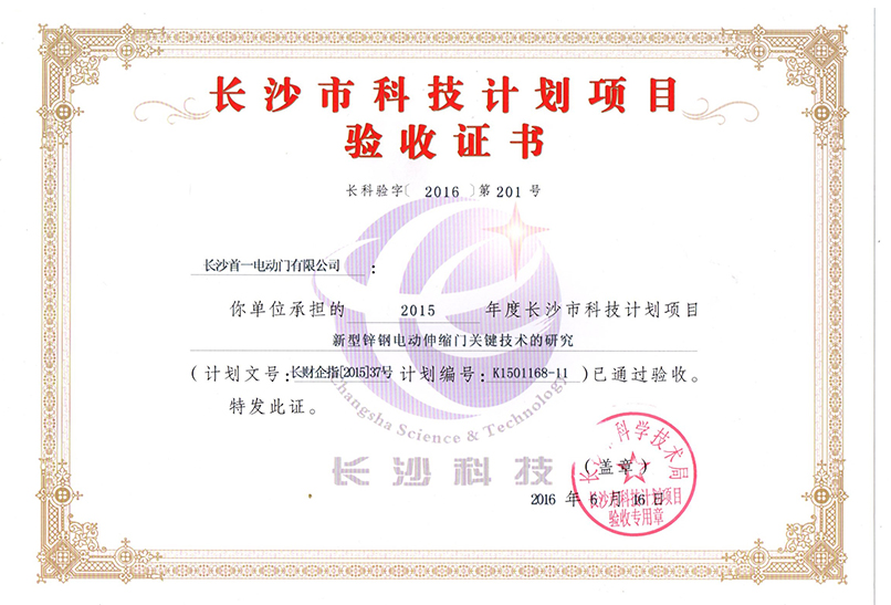 長(zhǎng)沙市科技計(jì)劃項(xiàng)目驗(yàn)收證書(shū)
